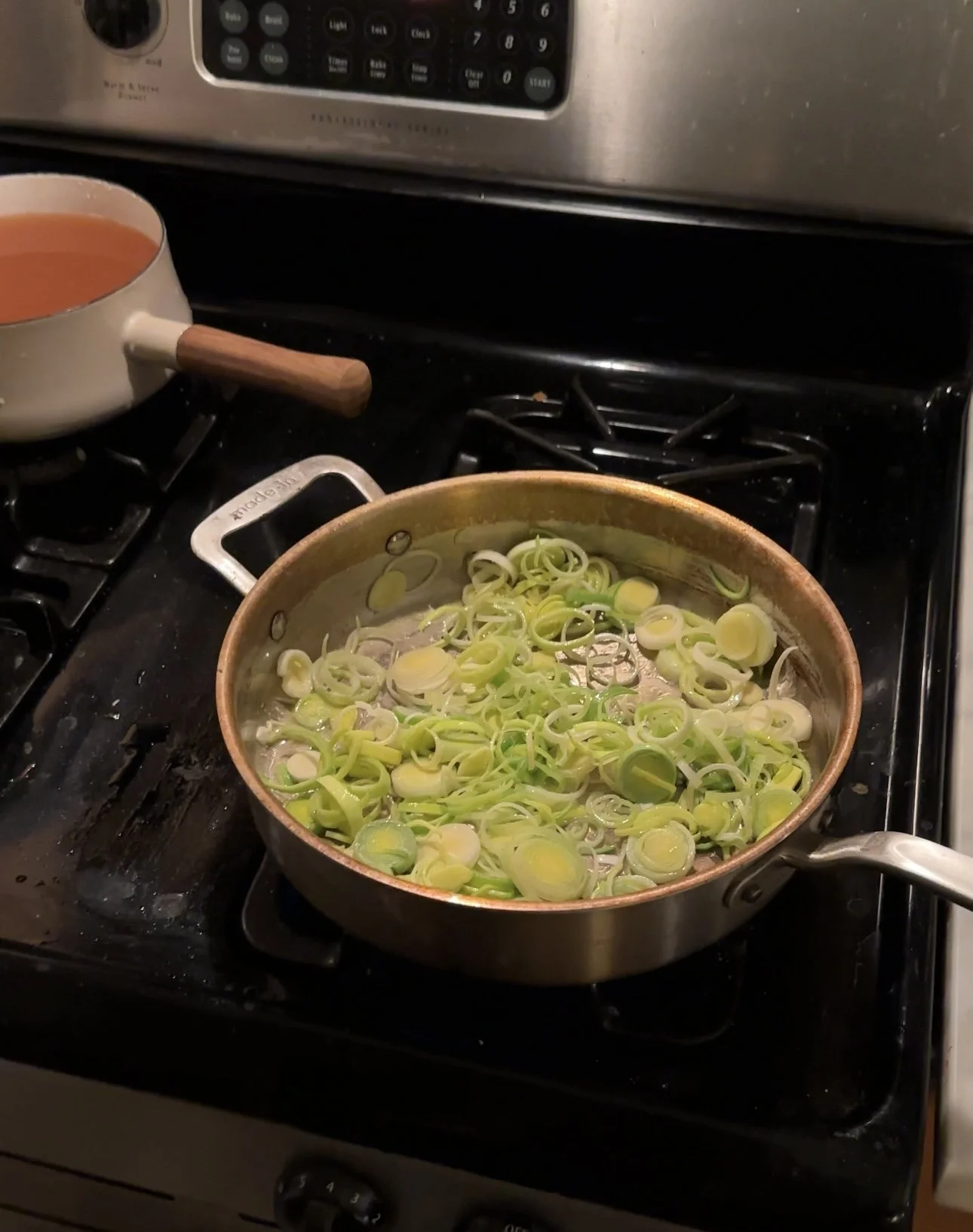 A lovely leek and parmigiano risotto. I skipped the scallops tonight to keep it vegetarian… and I love this recipe because it uses the entire leek! no waste… how fun!